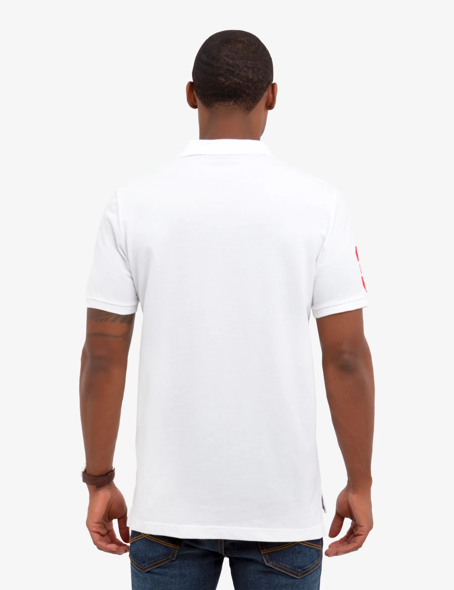 This BIG LOGO POLO SHIRT is an essential item for any modern wardrobe. Its classic collar with two-button placket and short ribbed sleeves provide elegance, while the large number three applique on the right sleeve, grand stitched logo on the upper left front, side vents, and ample silhouette create a perfect and stylish look. Model is wearing a size medium.