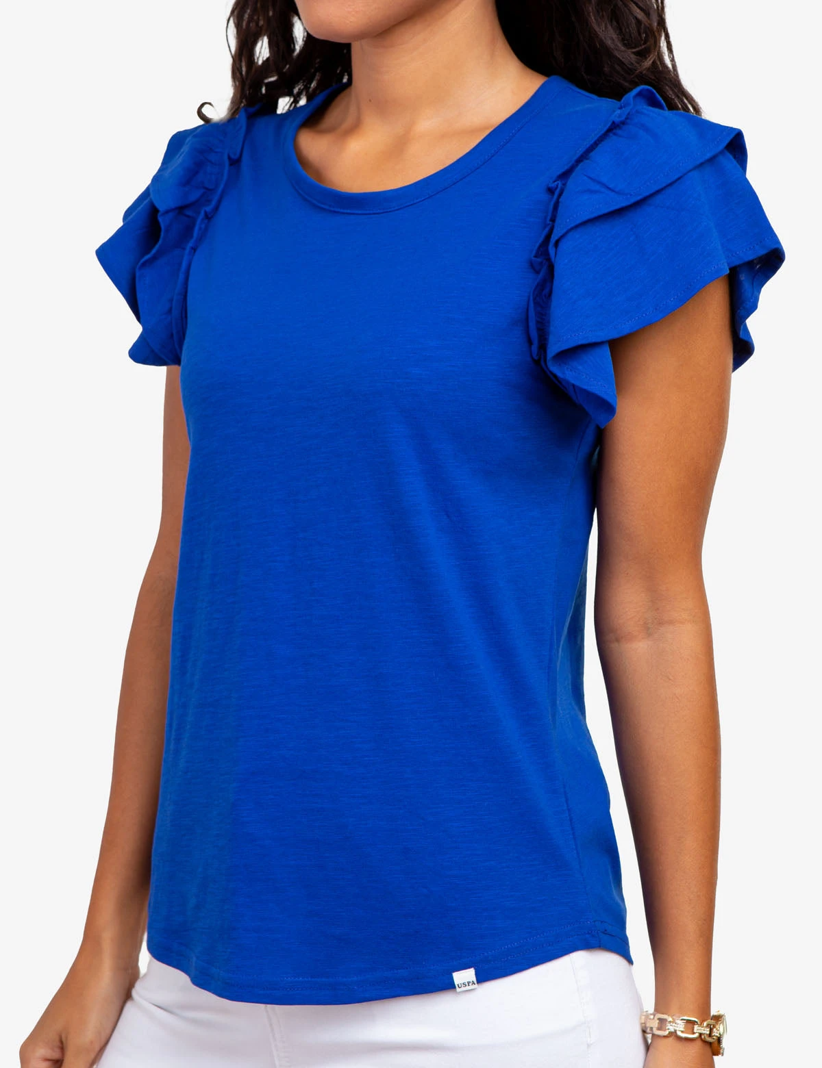 FLUTTER SLEEVE CREW NECK T-SHIRT