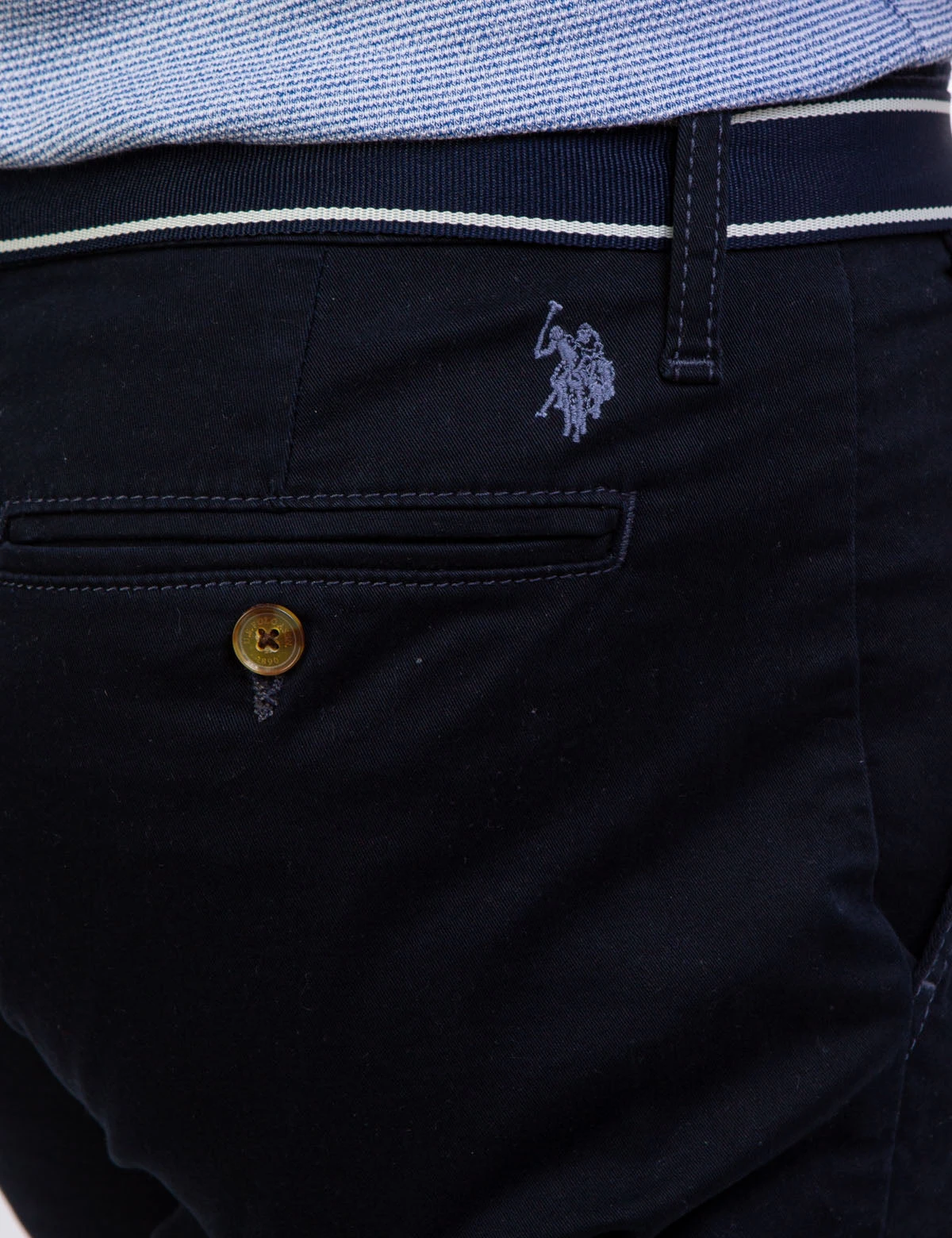 - Stitched logo above back right pocket.
