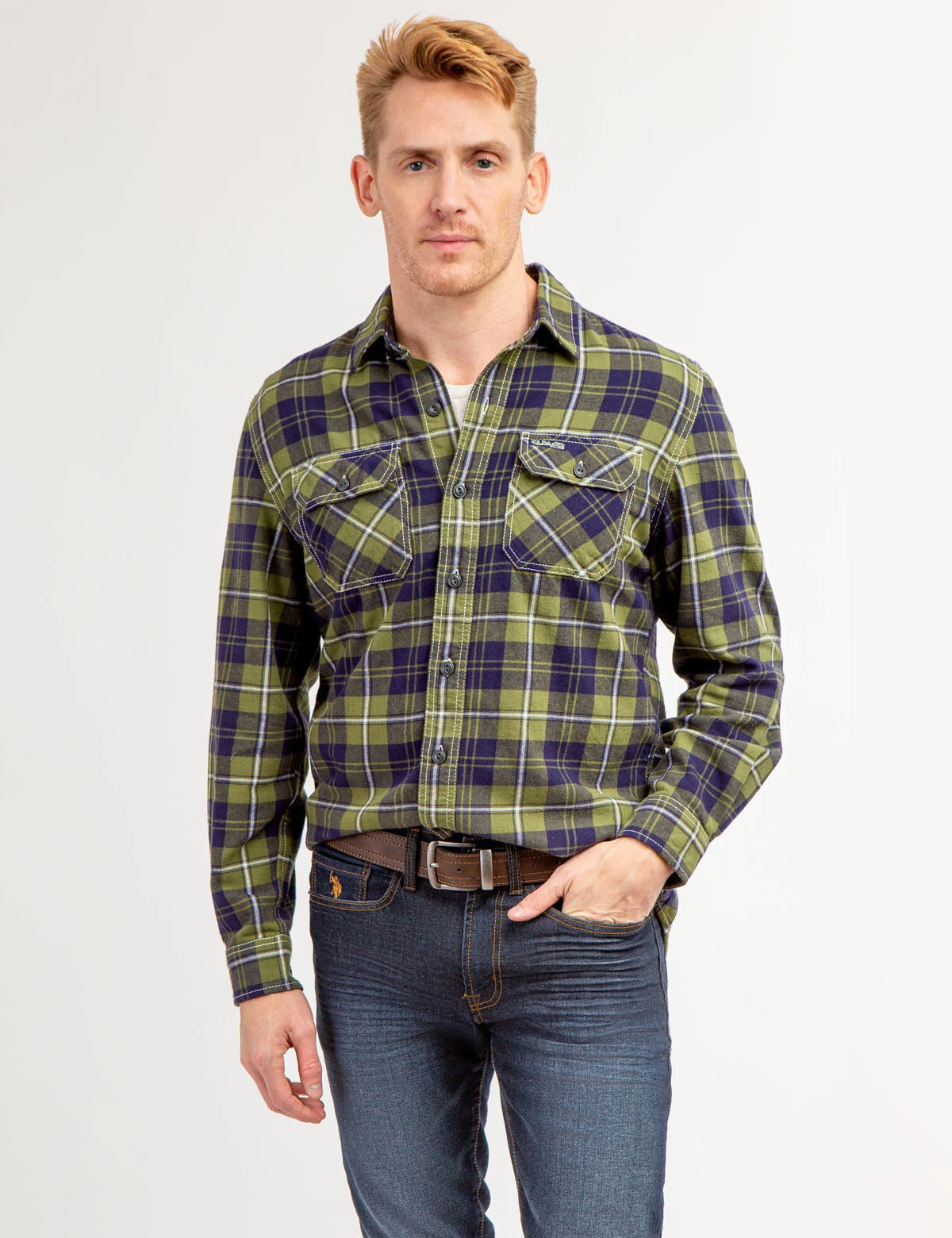 Crafted from luxurious twill plaid fabric, the HEAVY TWILL PLAID SHIRT WITH CHEST POCKETS features a tidy button-down collar and two chest pockets. Its curved hemline adds to its stylishness, while a branded patch on the left chest pocket adds to its exclusivity. Model is wearing a size Medium.Â