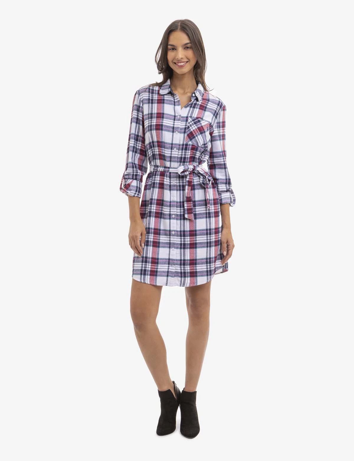 U.S. Polo Assn. LONG SLEEVE PLAID TIE DRESS