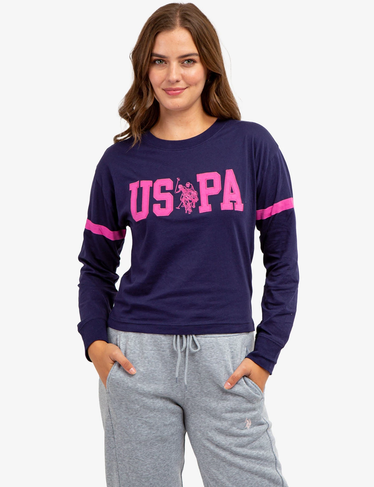 U.S. Polo Assn. LONG SLEEVE USPA APPLIQUE CROPPED T-SHIRT