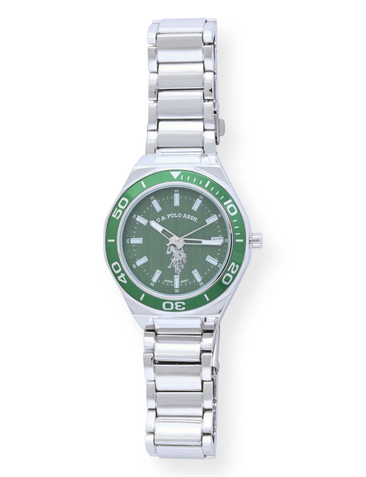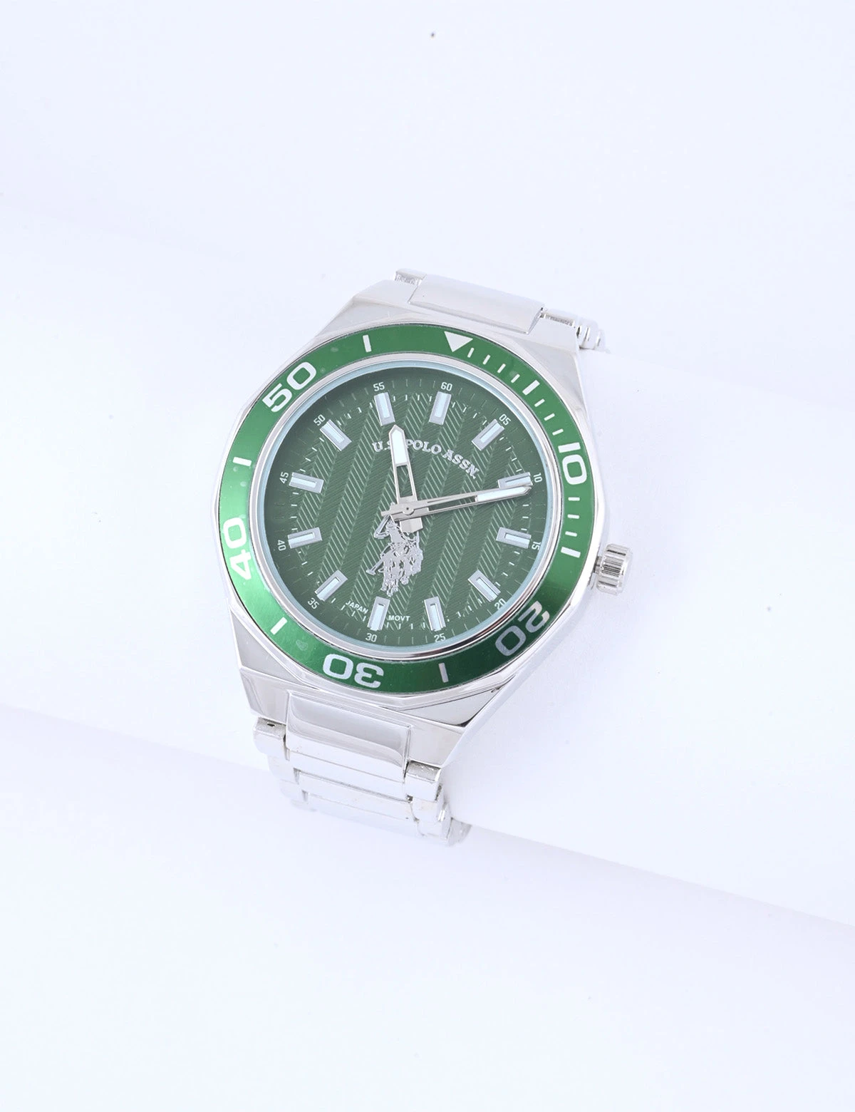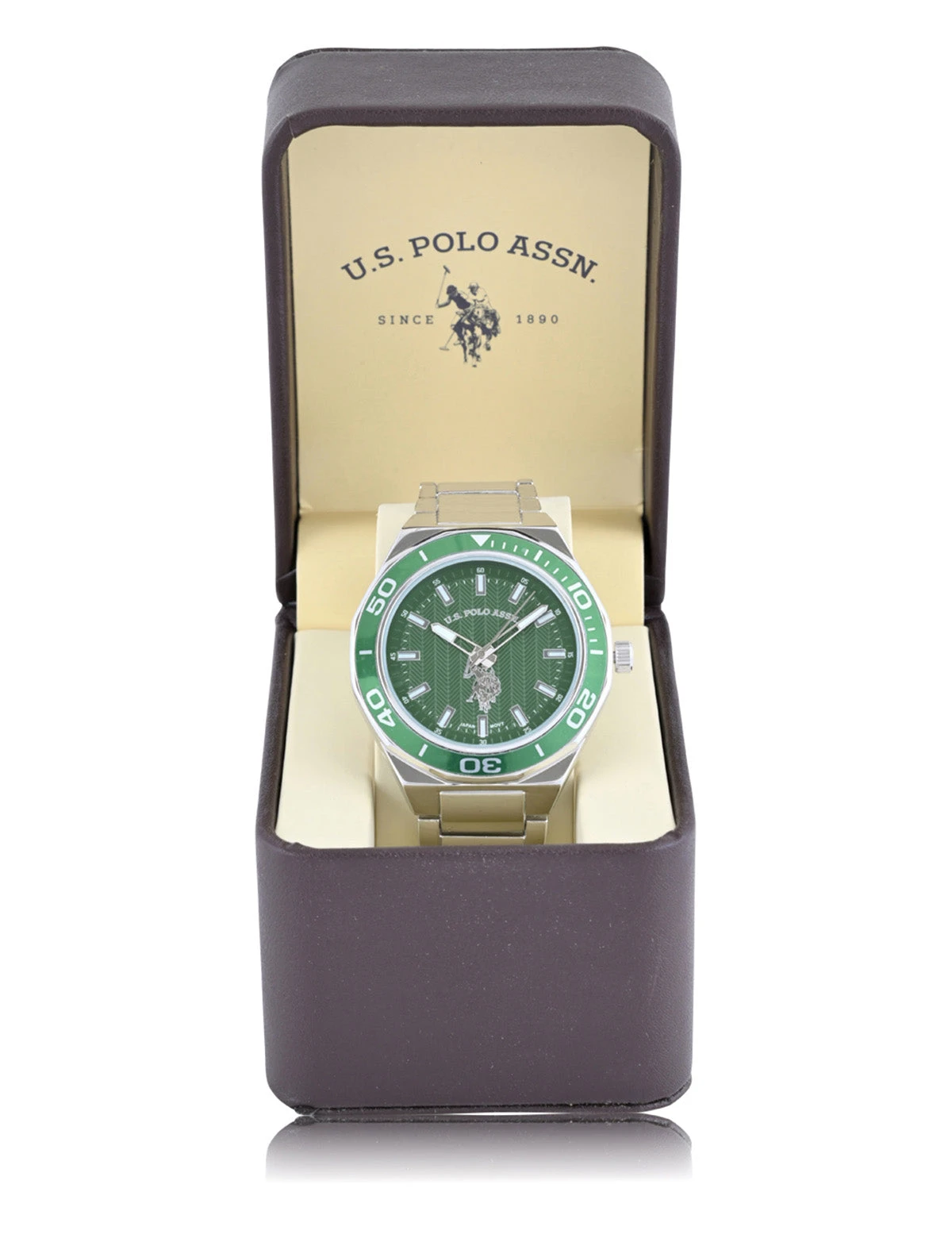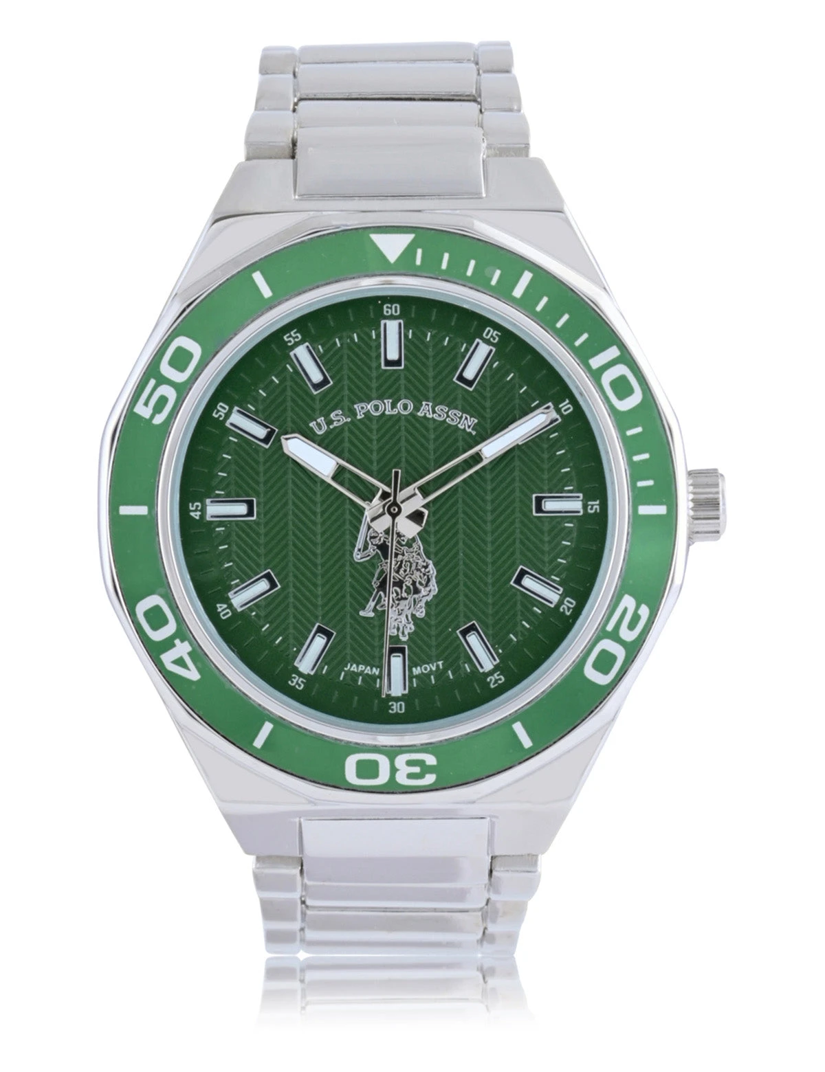 U.S. Polo Assn. MEN’S SILVER LINK WITH GREEN DIAL ANALOG WATCH