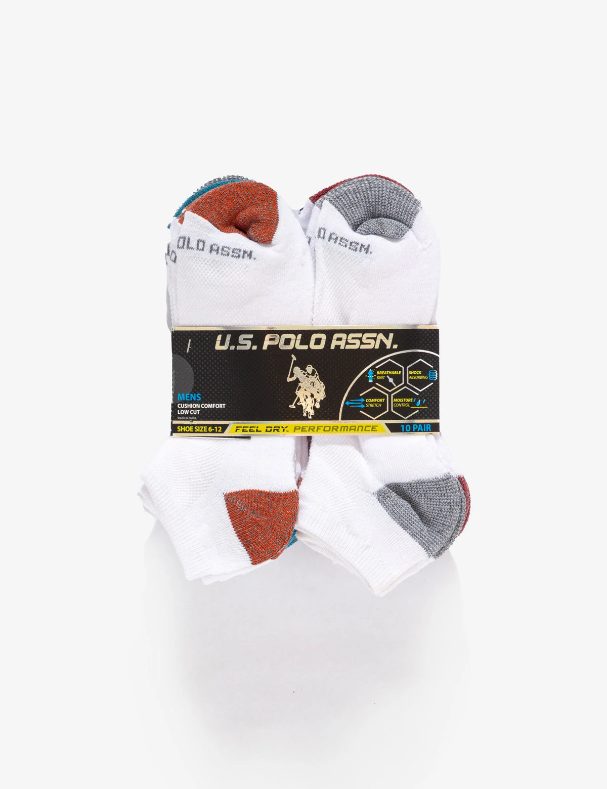 U.S. Polo Assn. MENS 10PK LOW CUT PERFORMANCE SOCKS