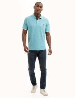 - Tipped collar with five-button front placket.