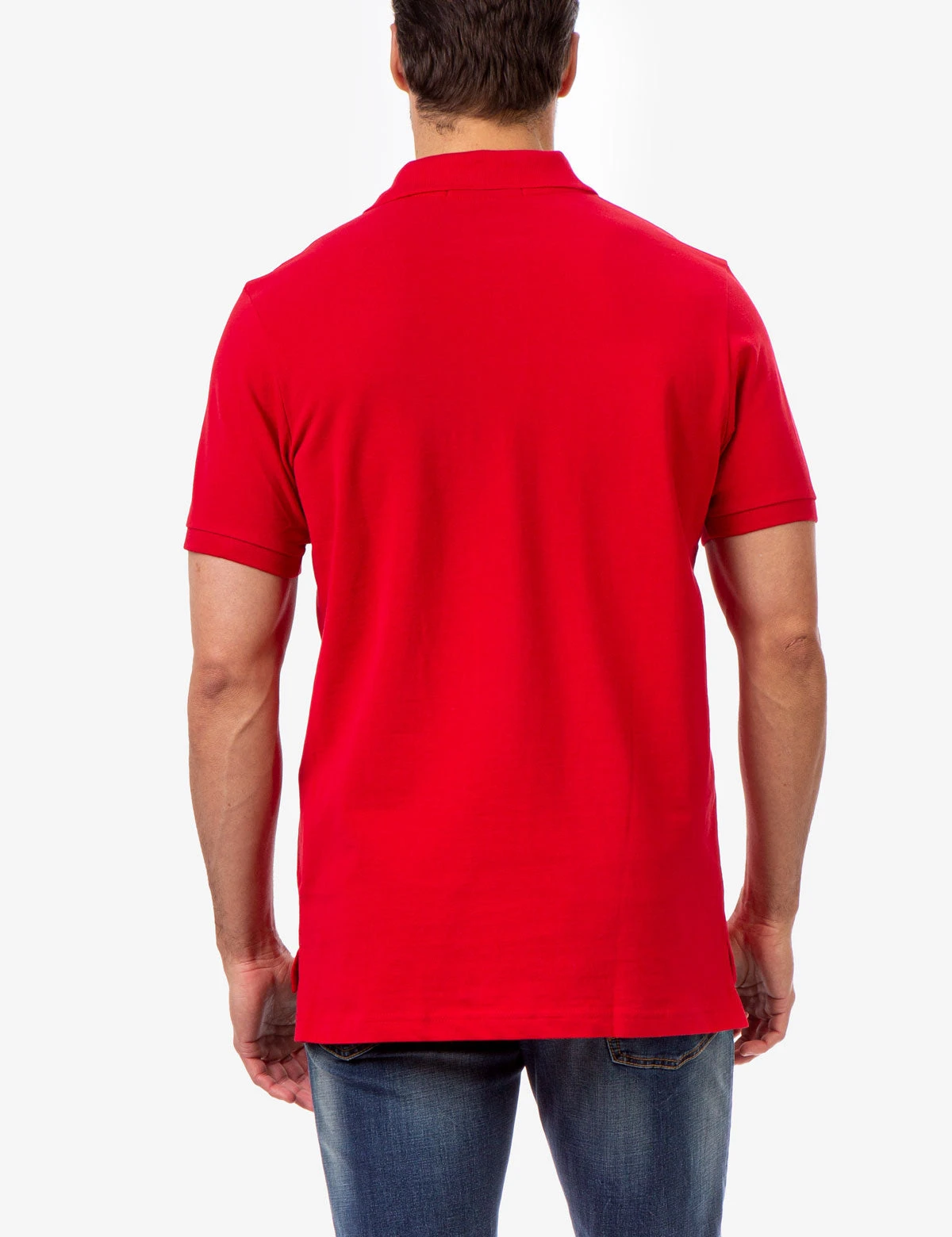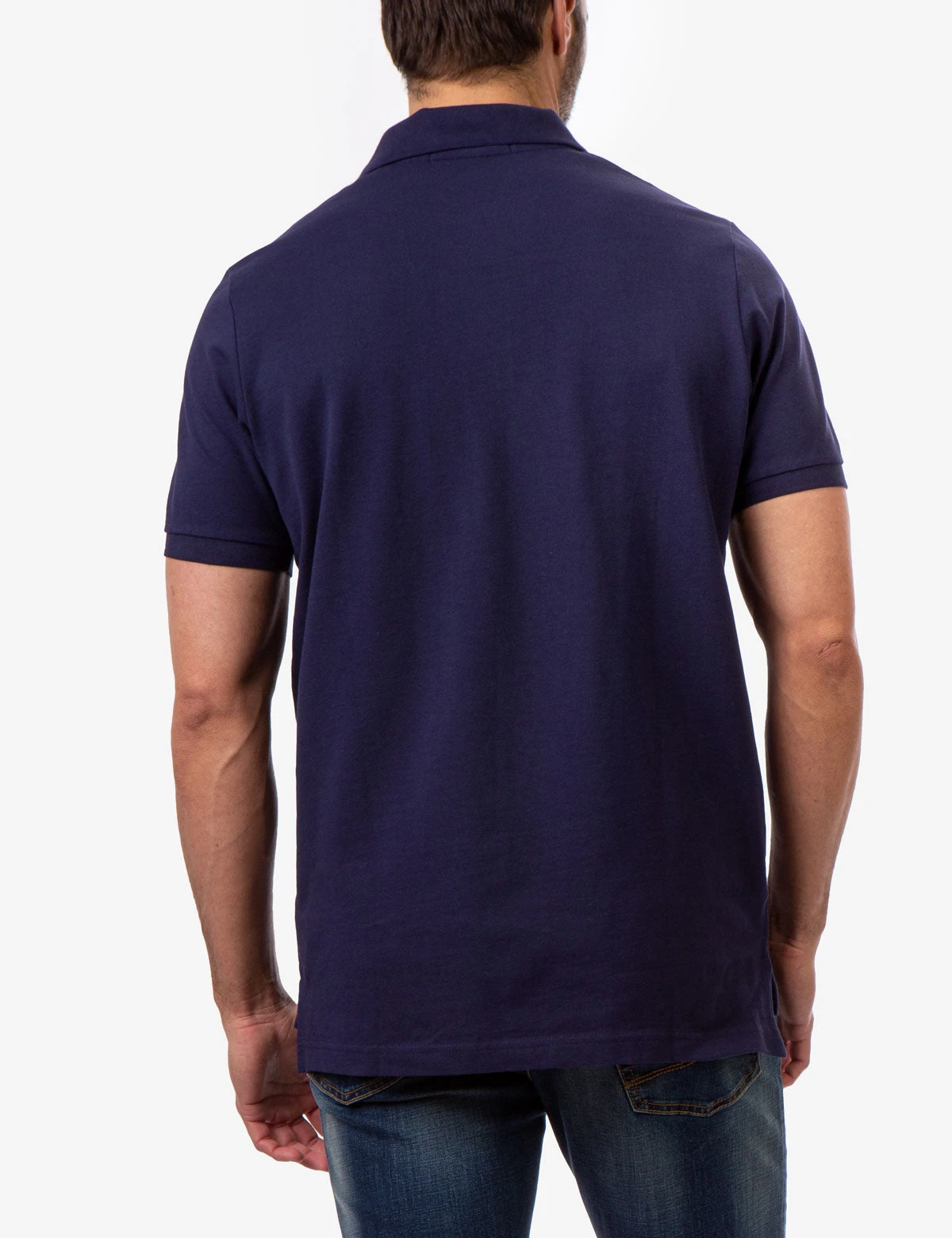 Reach for effortless style and comfort with our soft, deep-dyed short sleeve PIQUE SMALL LOGO POLO SHIRT, embellished with our signature logo. Featuring a universally wearable modern fit, this design presents a classic collar with two-button front placket, finished with a small embroidered logo on the upper left front in timeless polo shirt construction. Model is wearing a size medium.