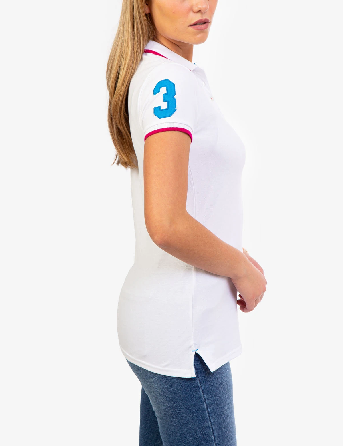 Our TRIPLE CROWN POLO SHIRT embodies timeless design, evoking a classic yet modern style. Designed with a regular fit, straight hemline, vents at the side, ribbed tipped collar and short sleeves, this wardrobe staple is a must-have. This item also features a distinct contrast three-button placket, large embroidered logo at the upper right and an embroidered “three” patch on the side sleeve. Model is wearing a size small.