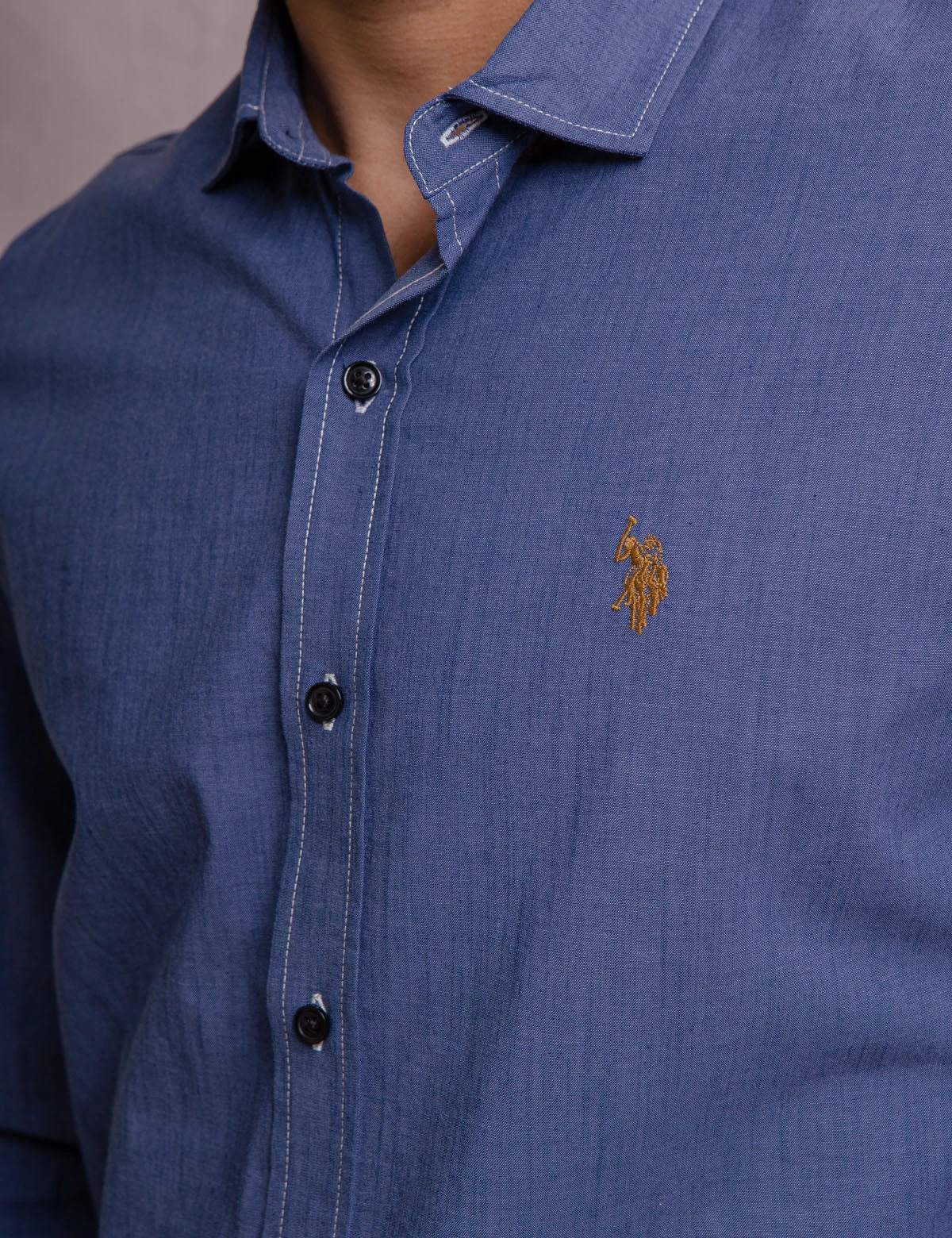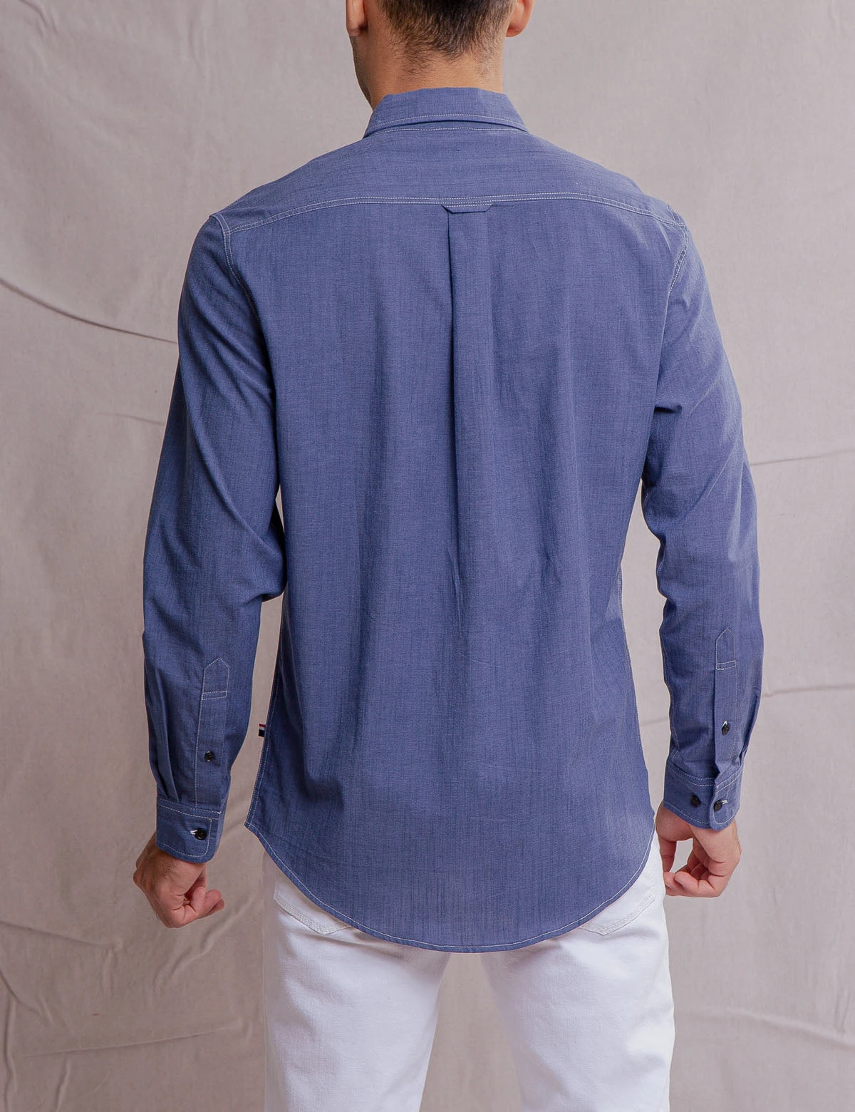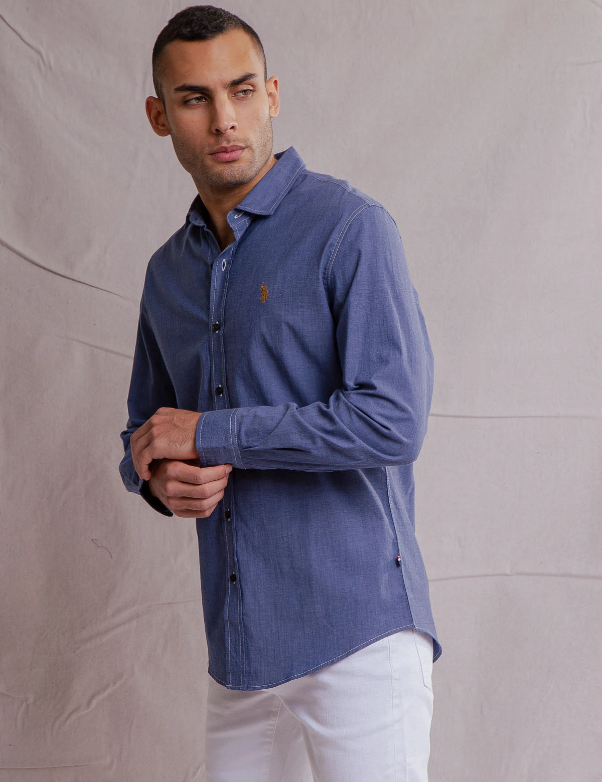 Exude confidence in simplistic style with our White Label Stretch Chambray Shirt. This garment features the quality and comfort that you need with powerful fabrics and luxury you can feel.