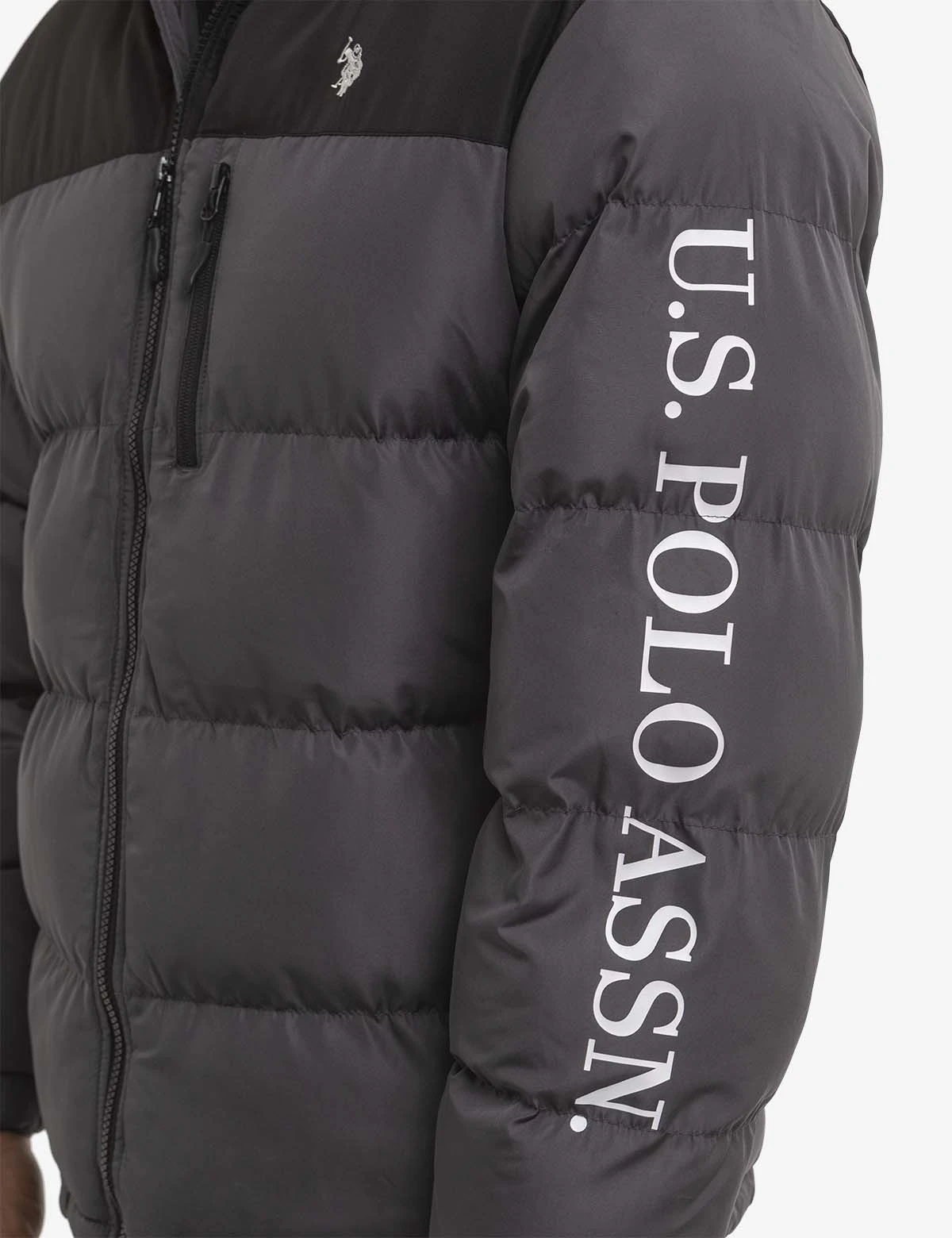 U.S. Polo Assn. WORDMARK COLORBLOCK HOODED PUFFER JACKET