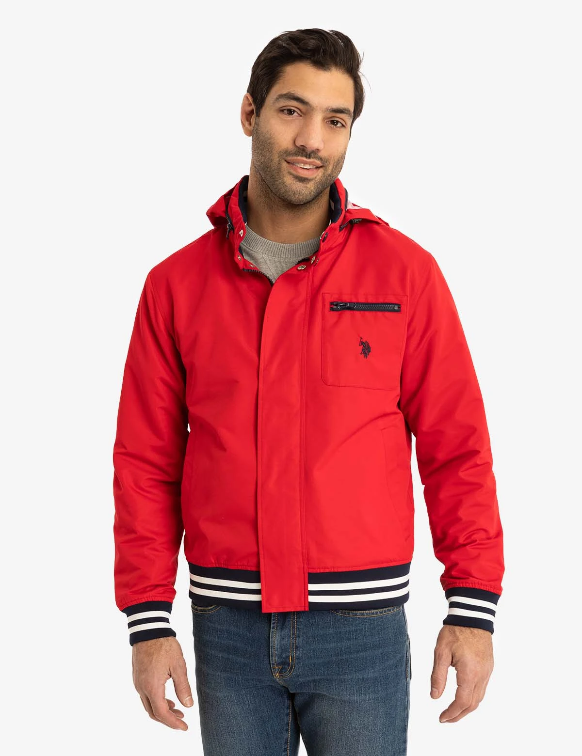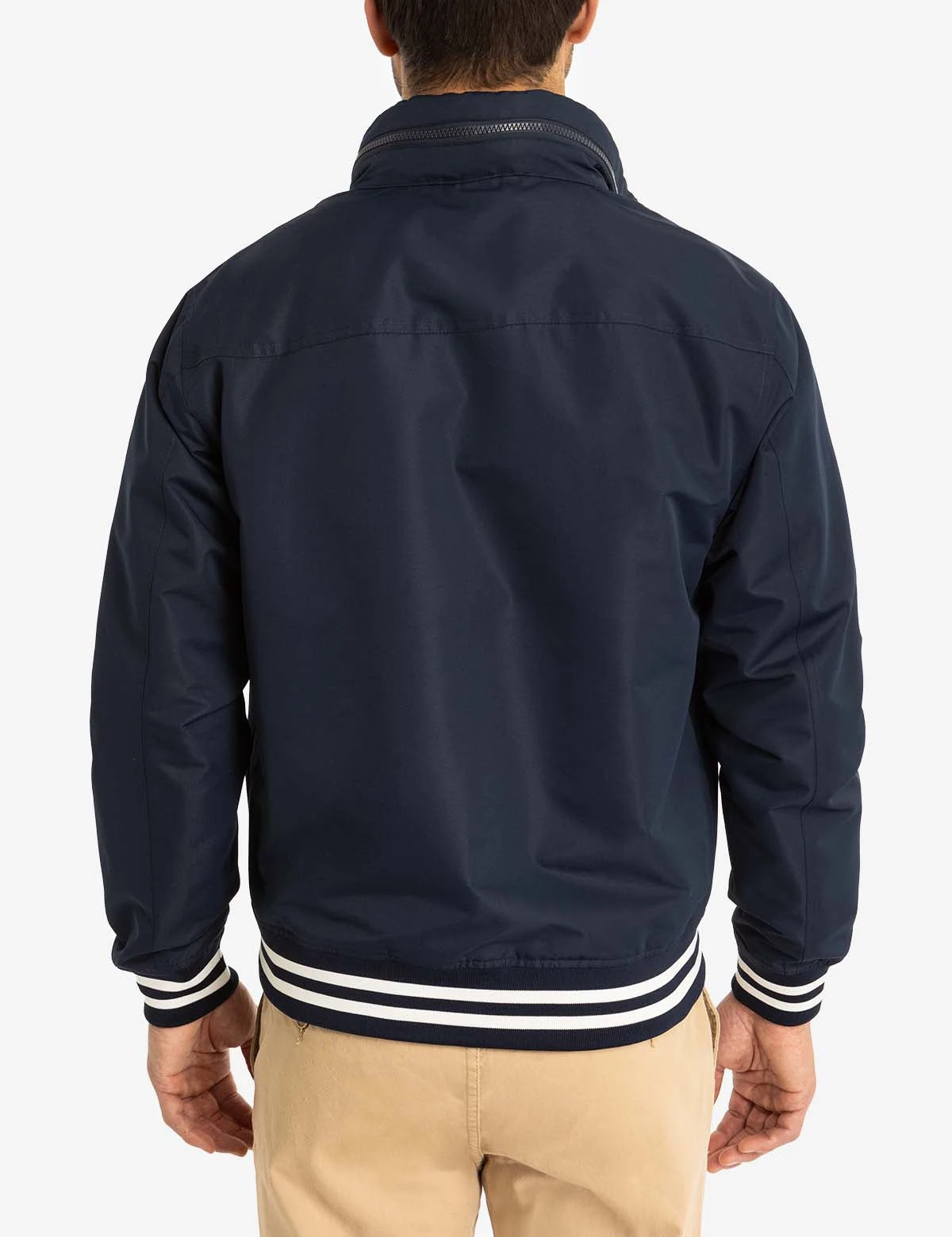- Rib-trim collar, hem and cuffs with stripe design.Â
